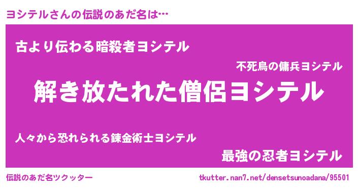| 男性向けラノベタイトル風あだ名 | 『ヨシテルに滅ぼされるだけの簡単なお仕事です』 |