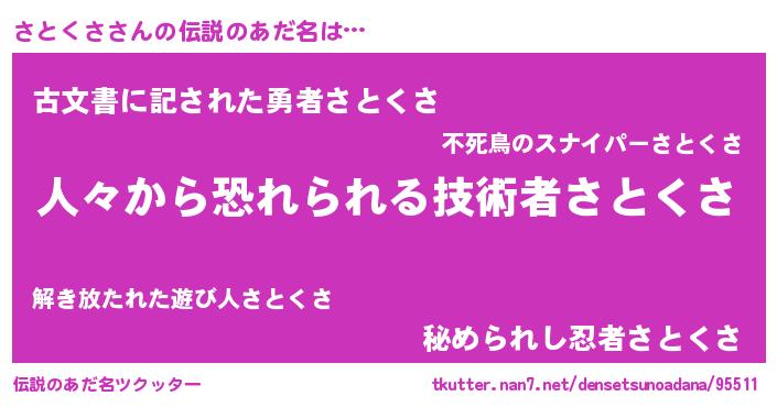 | ヒーロー風カッコイイあだ名 | 『正義の使者さとくさ』『ネオサトクサ』 |