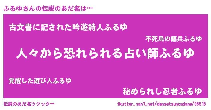 | ヒーロー風カッコイイあだ名 | 『正義の使者ふるゆ』『究極戦士フルユ』 |