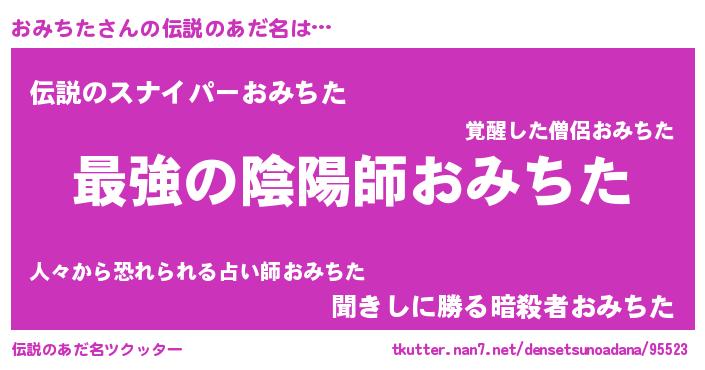 | 胡散臭い通販商品みたいなあだ名 | 『あなたにだけ特別に提供する世界で10本だけ現存している希少なブランデー…その名も「おみちた」』 |