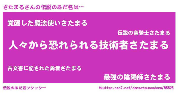 | ヒーロー風カッコイイあだ名 | 『正義の使者さたまる』『天弓騎士サタ』 |