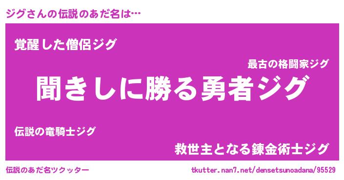 | 意味不明あだ名 | 『永久保存ジグ』『住所不定無職ジグ(84歳)』 |