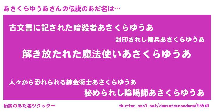 | 意味不明あだ名 | 『とにかく怪しいあさくらゆうあ』 |