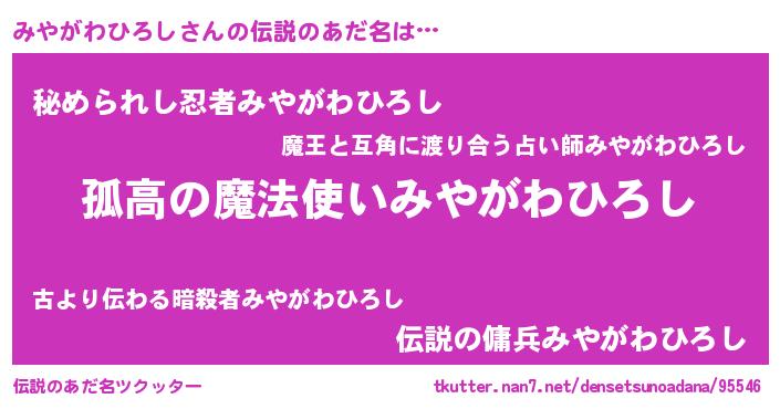 | ヒーロー風カッコイイあだ名 | 『暗黒騎士ミヤ』『仮面ミヤダー』 |