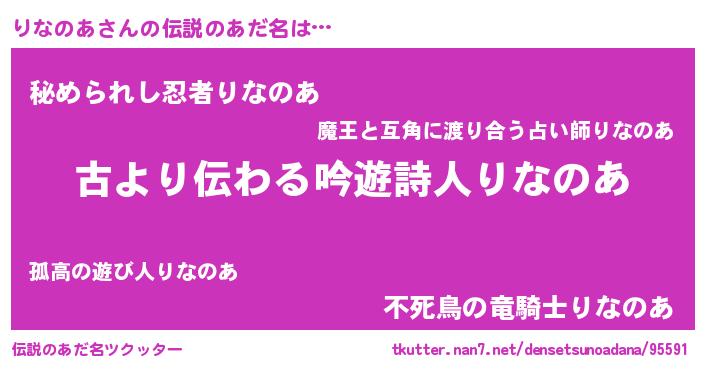 | 胡散臭い通販商品みたいなあだ名 | 『テレビで話題の高麗人参…その名も「りなのあ」』 |