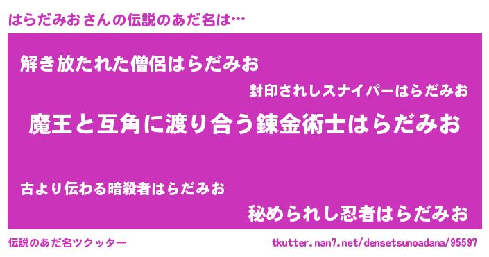 | 意味不明あだ名 | 『住所不定無職はらだみお(81歳)』 |