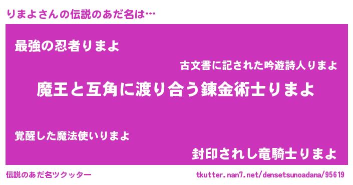 | ヒーロー風カッコイイあだ名 | 『ウルトラ戦士リマヨ』『仮面リマダー』 |
