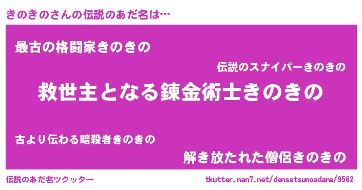 | ヒーロー風カッコイイあだ名 | 『天空の使者きのきの』『黄金騎士キノ』 |