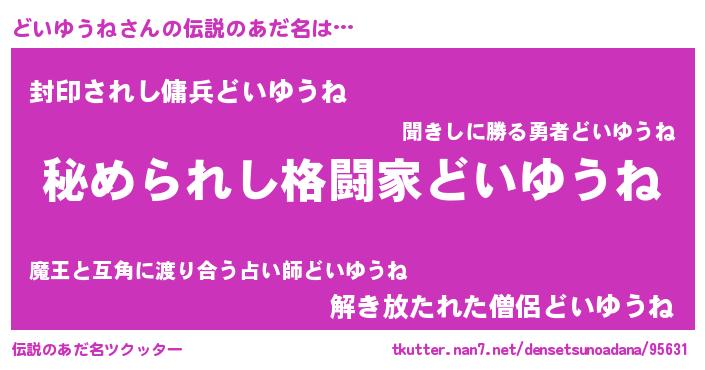 | 恥ずかしいあだ名 | 『どいっちょ』『プリティーどいゆうね』 |