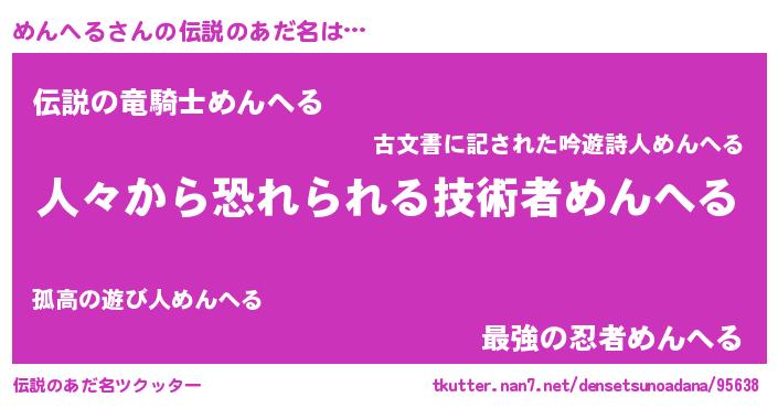 | ヒーロー風カッコイイあだ名 | 『正義の使者めんへる』『ネオメンヘル』 |