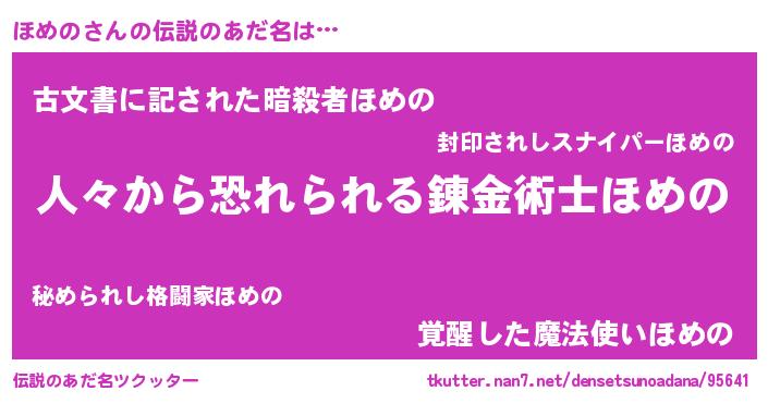 | 女子向けラノベタイトル風あだ名 | 『ほめの夫妻のなれそめ』 |