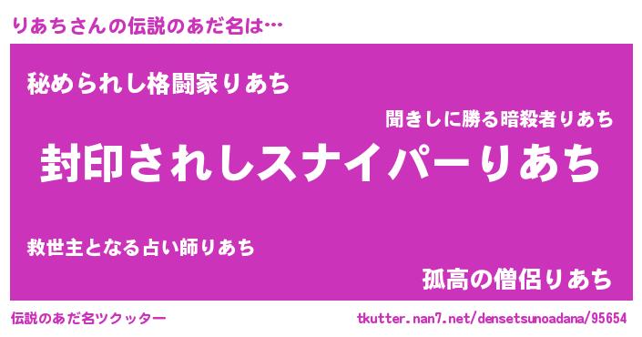 | 胡散臭い通販商品みたいなあだ名 | 『億万長者になれる霊験あらたかなお札…その名も「りあち」』 |
