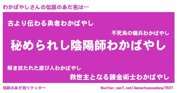 | ヒーロー風カッコイイあだ名 | 『仮面ワカダー』『究極戦士ワカバヤシ』 |