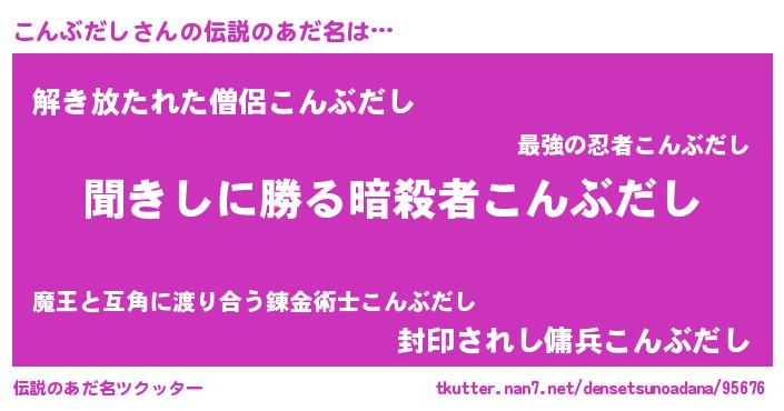 | 意味不明あだ名 | 『自称こんぶだし』『永久保存こんぶだし』 |