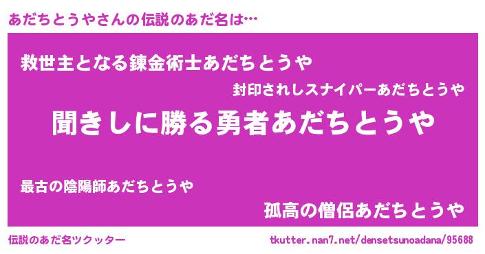 | 肩書あだ名 | 『あだちとうや教官』『あだちとうや総統』 |