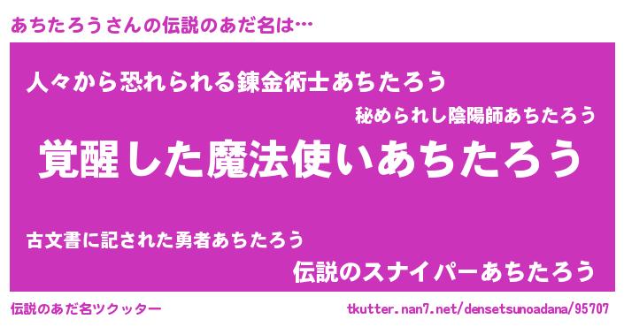 | 男性向けラノベタイトル風あだ名 | 『この素晴らしい世界にあちたろうを!』 |