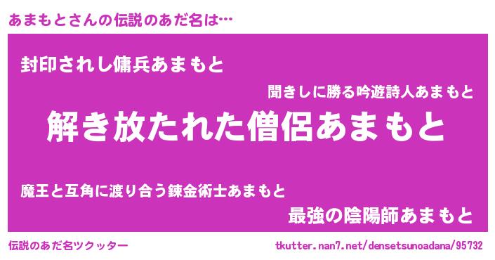 | ヒーロー風カッコイイあだ名 | 『魔戒騎士アマ』『スーパーアマモト』 |