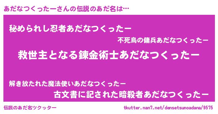 | 女子向けラノベタイトル風あだ名 | 『死神あだなつくったーの再婚』 |
