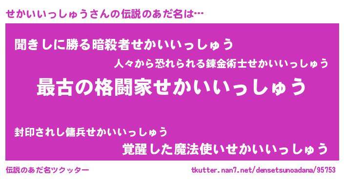 | ファンタジー風あだ名 | 『エターナルセカイイッシュウー』 |