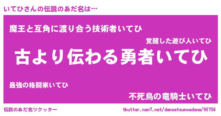 | 男性向けラノベタイトル風あだ名 | 『いてひという概念が存在しない退屈な世界 』 |