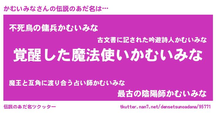 | 胡散臭い通販商品みたいなあだ名 | 『あなたにだけ特別に提供する100年もののヴィンテージワイン…その名も「かむいみな」』 |