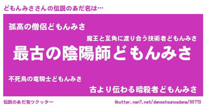 | 男性向けラノベタイトル風あだ名 | 『うちの娘の為ならば、俺はもしかしたらどもんみさも倒せるかもしれない。』 |