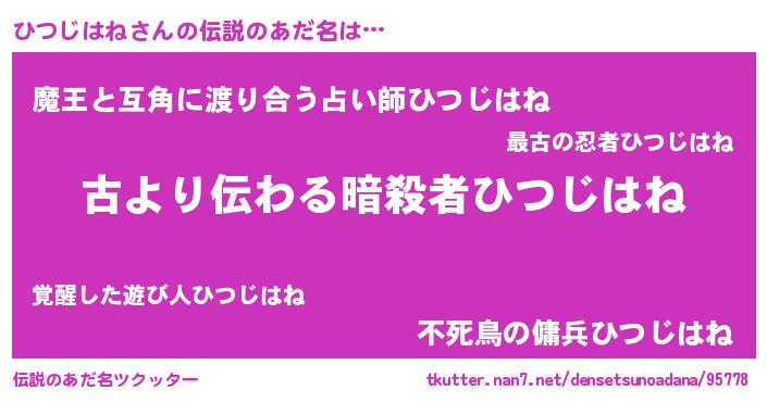 | 男性向けラノベタイトル風あだ名 | 『ひつじはねという概念が存在しない退屈な世界 』 |