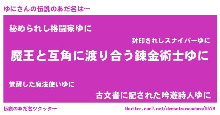 | ポケモン風あだ名 | 『ユーニイ』『ユックウザ』 |