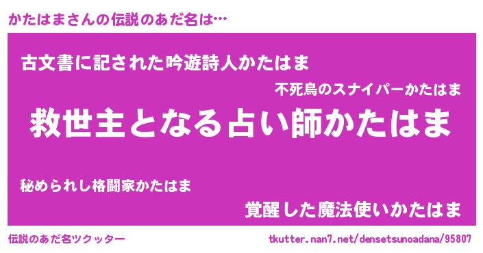| 男性向けラノベタイトル風あだ名 | 『かたはまに滅ぼされるだけの簡単なお仕事です』 |