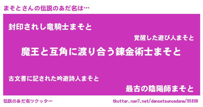 | ヒーロー風カッコイイあだ名 | 『慈愛の使者まそと』『スーパーマソト』 |