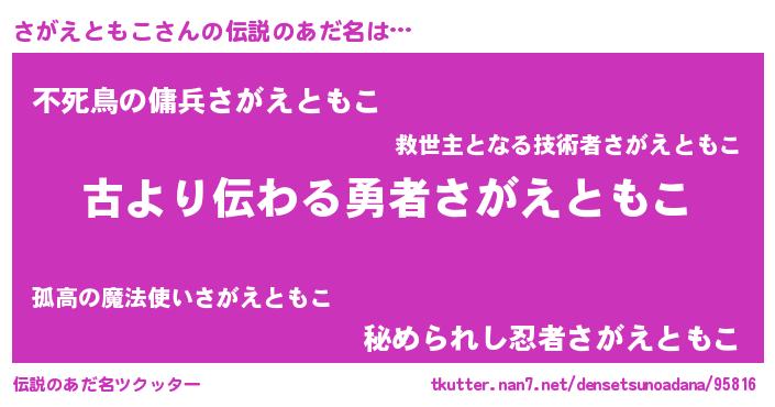 | 意味不明あだ名 | 『永久保存さがえともこ』 |