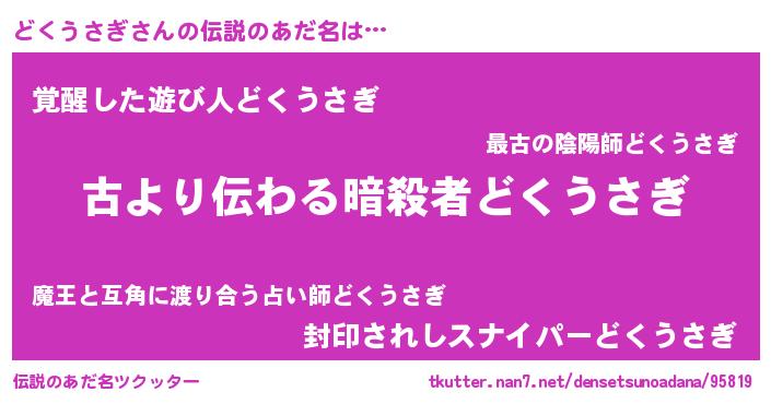 | 意味不明あだ名 | 『住所不定無職どくうさぎ(47歳)』 |