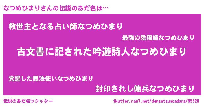 | 意味不明あだ名 | 『住所不定無職なつめひまり(8歳)』 |