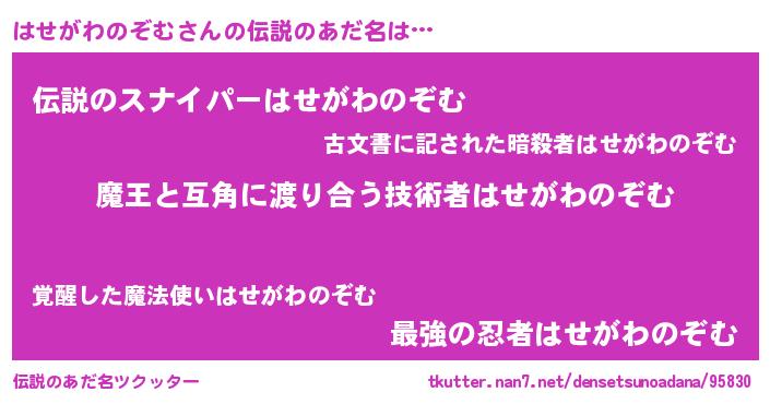 | 女子向けラノベタイトル風あだ名 | 『はせがわのぞむ恋絵巻』 |
