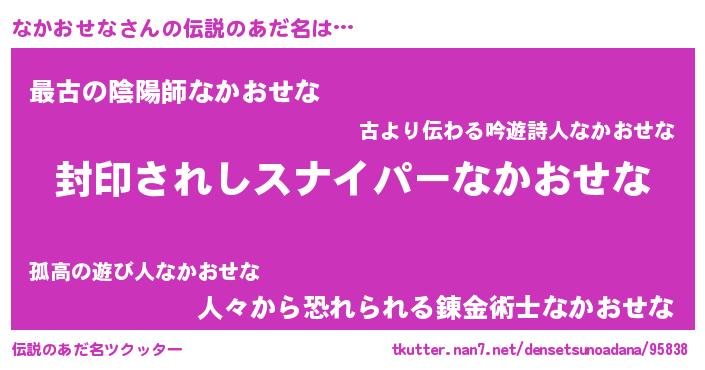 | 女子向けラノベタイトル風あだ名 | 『なかおせなストレイドッグス』 |