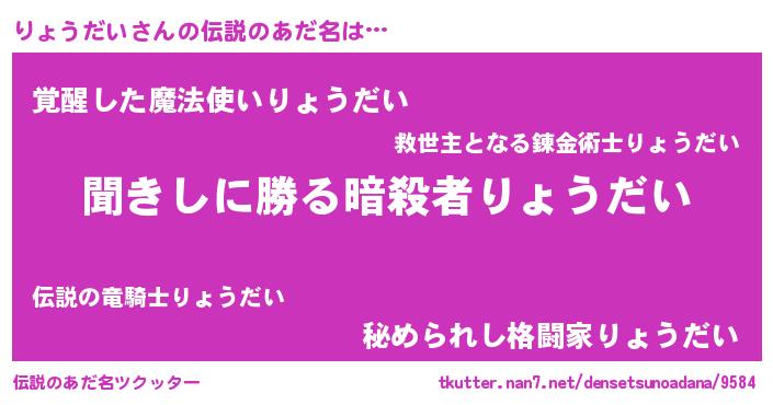 | 胡散臭い通販商品みたいなあだ名 | 『絶対に幸福をもたらす健康食品…その名も「りょうだい」』 |