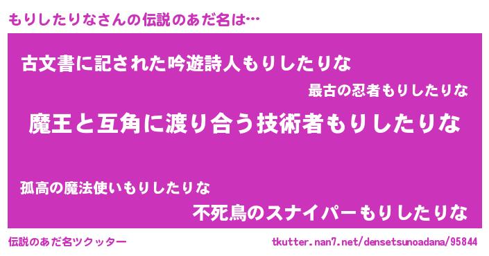 | 意味不明あだ名 | 『住所不定無職もりしたりな(12歳)』 |