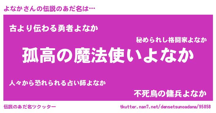 | 女子向けラノベタイトル風あだ名 | 『よなかは平凡を望む』『闇のよなか』 |