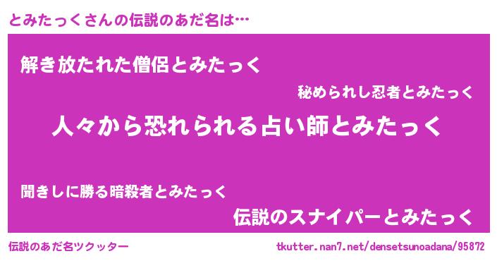| ヒーロー風カッコイイあだ名 | 『正義の使者とみたっく』『銀牙騎士トミ』 |
