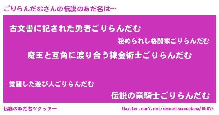 | 意味不明あだ名 | 『住所不定無職ごりらんだむ(79歳)』 |
