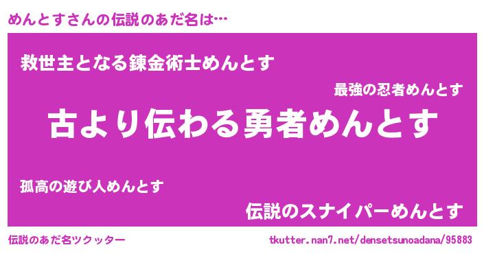 | 意味不明あだ名 | 『永久保存めんとす』『自称めんとす』 |