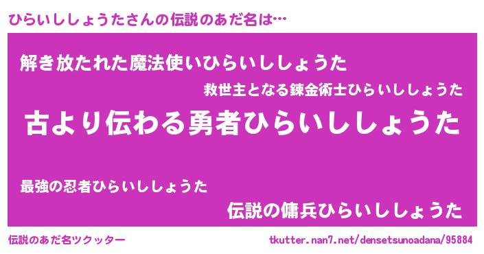 | 男性向けラノベタイトル風あだ名 | 『ひらいししょうたという概念が存在しない退屈な世界 』 |