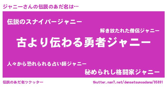 | 意味不明あだ名 | 『自称ジャニー』『永久保存ジャニー』 |