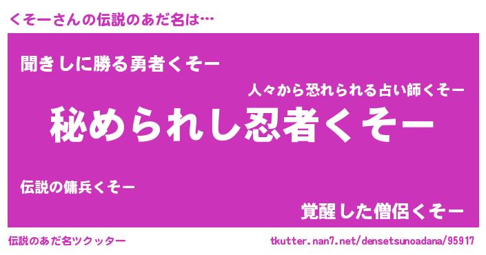 | 意味不明あだ名 | 『住所不定無職くそー(43歳)』 |