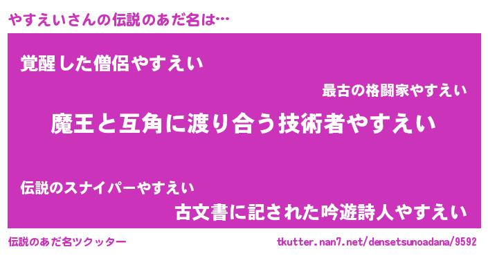 | ヘコむあだ名 | 『やすを』『やすえい(笑)』 |