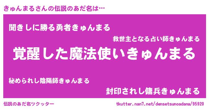 | 意味不明あだ名 | 『住所不定無職きゅんまる(8歳)』 |