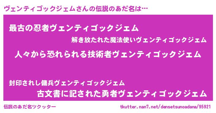 | ヒーロー風カッコイイあだ名 | 『正義の使者ヴェンティゴックジェム』 |