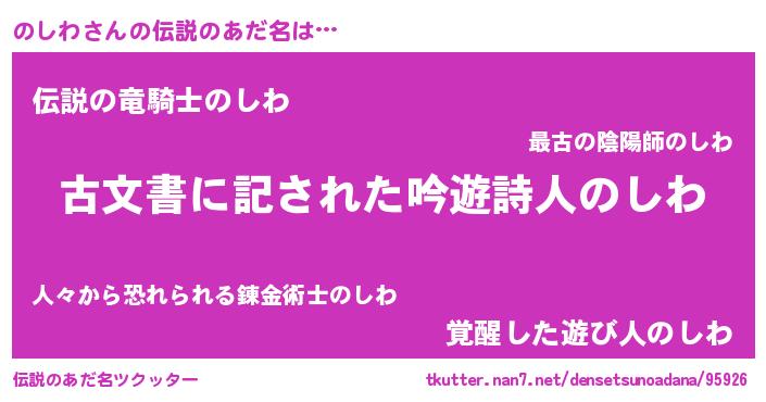 | ヘコむあだ名 | 『のしわ(笑)』『のしふぇ~』 |