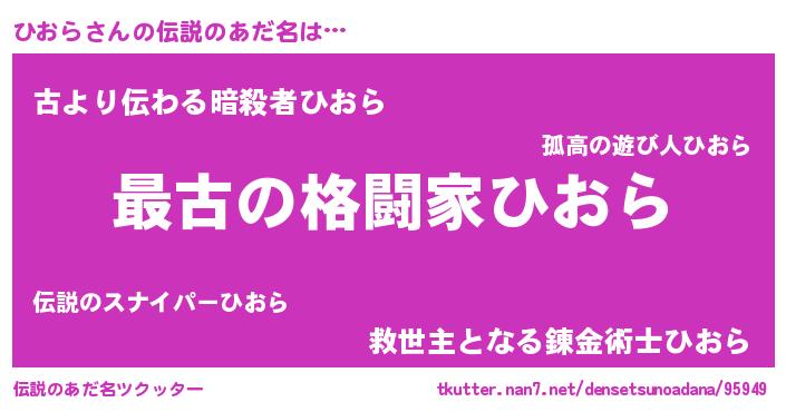 | 男性向けラノベタイトル風あだ名 | 『ひおらに滅ぼされるだけの簡単なお仕事です』 |
