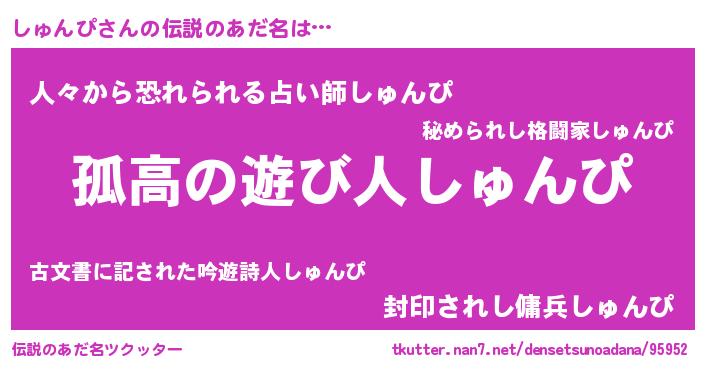 | 意味不明あだ名 | 『住所不定無職しゅんぴ(91歳)』 |